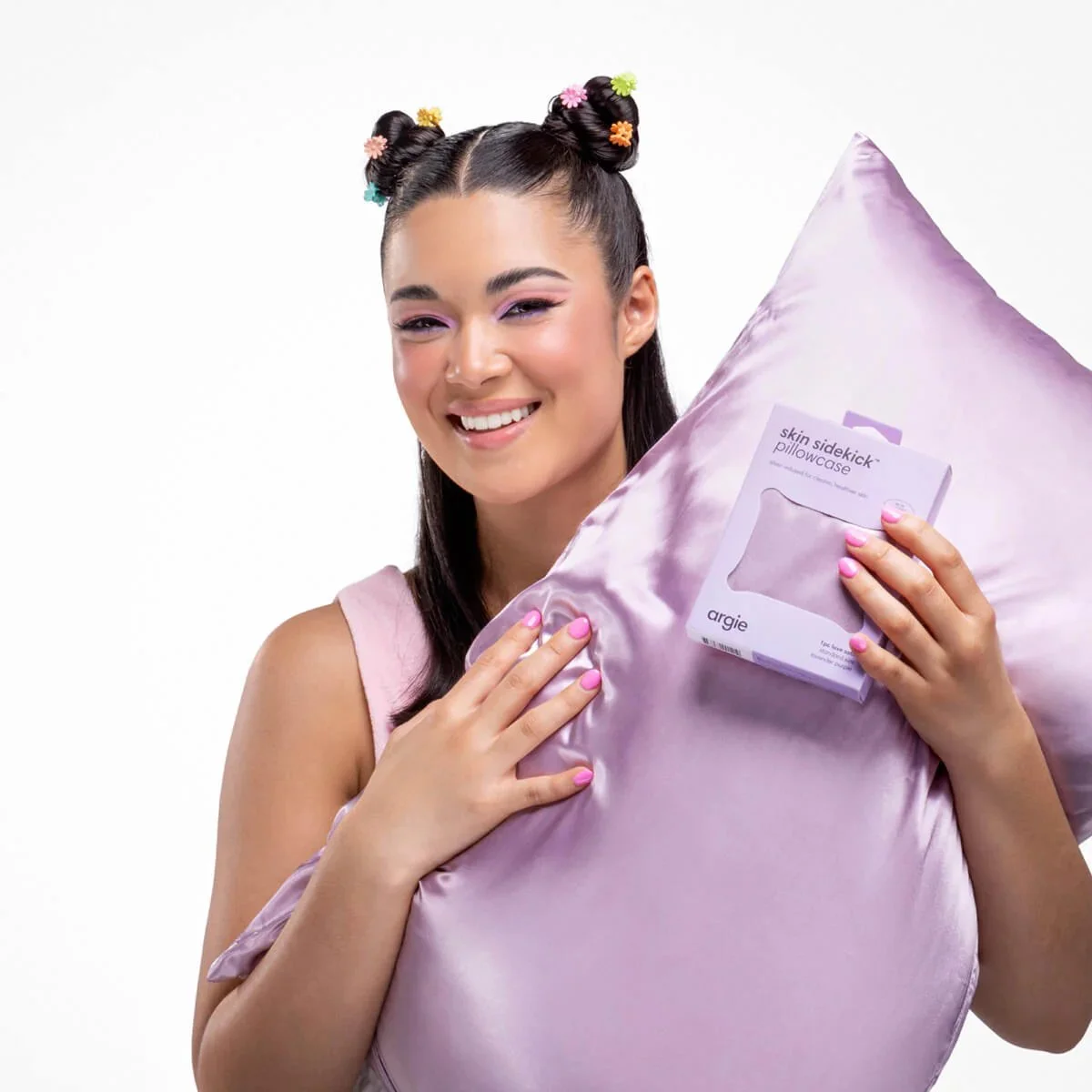 $59 / https://us.meetargie.com/products/skin-sidekick-silk-pillowcase?variant=47164617490744